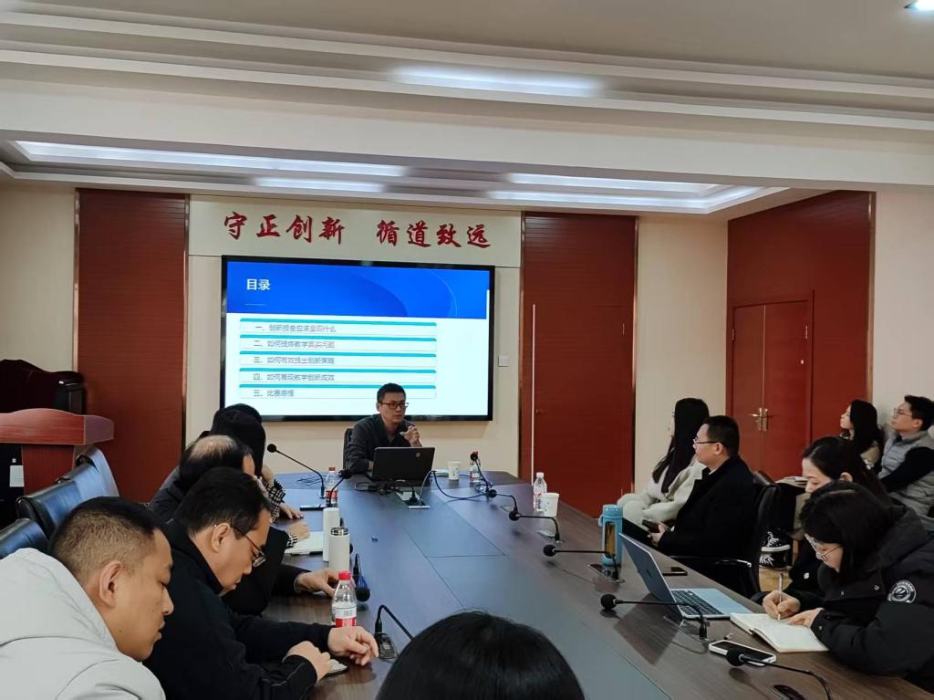 在随后的交流环节,学院参赛教师依次展示了修改后的教学创新成果报告。苑教授逐一进行细致点评,在问题聚焦、逻辑架构、数据支撑、术语规范等方面提出具体建议,并分享了其最新的课程创新设计方案,为在场教师提供了宝贵的参考范式。