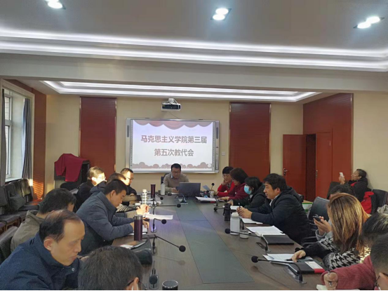 11月29日,马克思主义学院第三届第五次教代会在二办203会议室召开,学院领导班子全体成员、学院各教研室教师代表及全体行政工作人员参会。此次教代会由学院党委书记王青原主持。