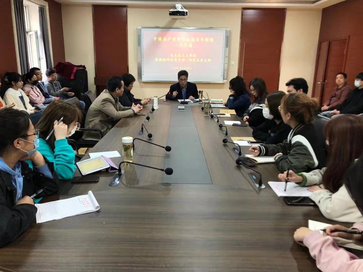 4月22日,我院在二办203举办党史学习教育专题讲座。此次讲座由原理教研室党支部主办,研究生党支部协办,教师党员李英、姚云、王晓路、王庆江、代砚春、赵燕和全体研究生参加。