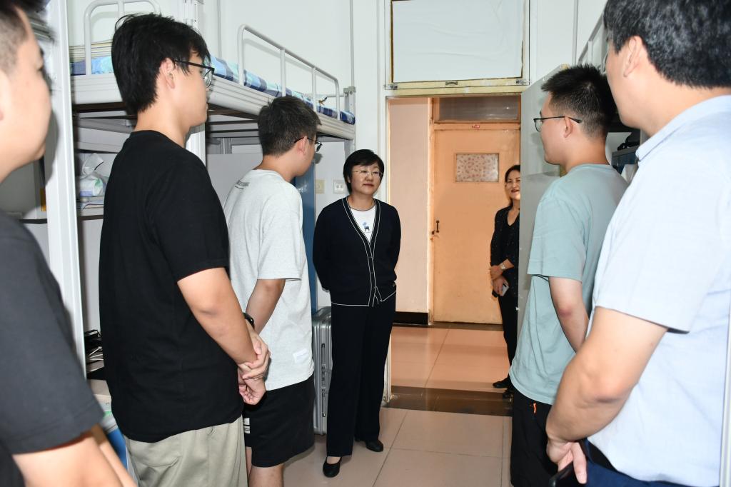 李晓华一行深入学生宿舍,细致检查了宿舍卫生状况、安全设施和公共区域管理,查看了各宿舍卫生清扫与物品摆放情况,并对宿舍环境整体整洁有序、用电行为规范表示肯定。检查过程中,李晓华与同学们面对面交流,亲切询问大家的学习进展与生活状况,认真听取学生对学校教育教学、学生管理、后勤服务等方面的意见与建议。她特别强调,宿舍安全是校园安全的重要环节,希望同学们自觉维护良好卫生环境,积极建设健康向上的宿舍文化,共同营造整洁、文明、安全的学习生活空间。同时,她鼓励同学们珍惜在校时光,以饱满的精神状态投入新学期的学习科研,不断强化思想政治素养,科学规划学业发展与职业生涯,积极参与校园文化活动,实现全面成长成才。