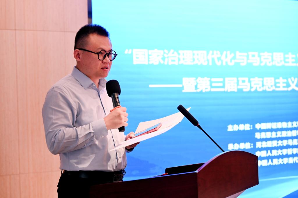 我院教师崔昆、李可心提交大会论文,在论坛上作了报告。崔昆在“国家治理现代化的唯物史观基础”的主旨发言中,指出唯物史观基础意味着规律的还原论。在国家治理现代化问题上,规律的还原尚未达到理论彻底。他强调,原来已有的著作对国家治理现代化的基本历史规律主要有三种观点,分别是经典理论中的国家和社会的理论、创新论、经济基础与上层建筑的关系理论。这三种理论观点都没有达到理论的彻底性。他认为,要回应国家治理现代化问题,必须进行历史规律的还原。只有把人的发展的“三形态”理论、国家和社会的关系理论、历史渐进方式综合起来,才能解释国家治理现代化问题。李可心探讨了“纳入全球正义的责任——戴维·米勒对全球正义理论的调和”。她提出全球正义理论主要围绕世界主义与国家主义的争论展开。部分学者试图调和世界主义与国家主义之间的矛盾,但这些尝试均未能成功。戴维·米勒试图将责任理念纳入到全球正义理论之中,通过责任路径对世界主义与国家主义的全球正义理论进行调和,以构建能够容纳世界主义和国家主义的全球正义理论,但最终走向了失败。