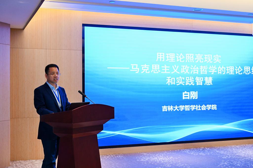 白刚教授围绕“在思想中把握时代马克思主义政治哲学的理论思维”“在批判旧世界中发现新世界——马克思主义政治哲学的实践智慧”“把中国经验提升为中国力量——当代中国马克思主义政治哲学的时代使命”三个方面,阐述了“用理论照亮现实——马克思主义政治哲学的理论思维和实践智慧”。他认为,哲学是建立在通晓思维的历史和成就基础上的理论思维。时代是本质与实存的统一。在批判旧世界中发现新世界,是马克思主义哲学包括马克思主义政治哲学的一个核心表达。把中国经验提升为中国理论,一方面要用中国道理总结好中国经验,另一方面要用中国式现代化的实践经验来总结中国经验。