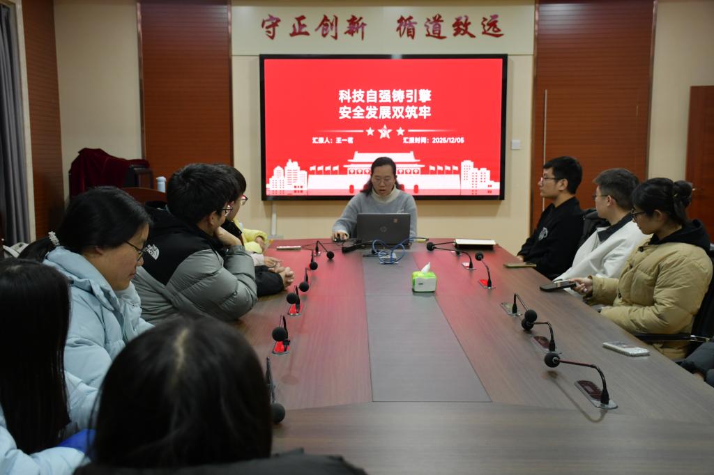 王一茗同学围绕新时代科技进步和安全提升之间的内在关系,阐述了加快实现高水平科技自立自强,对于推进国家安全体系和能力现代化所彰显的战略性支撑作用;姜媛媛、刘宗驰同学着重讲解了新时代加强国家科技安全的重要性、紧迫性,并结合具体案例,提出了提升科技安全的策略举措。