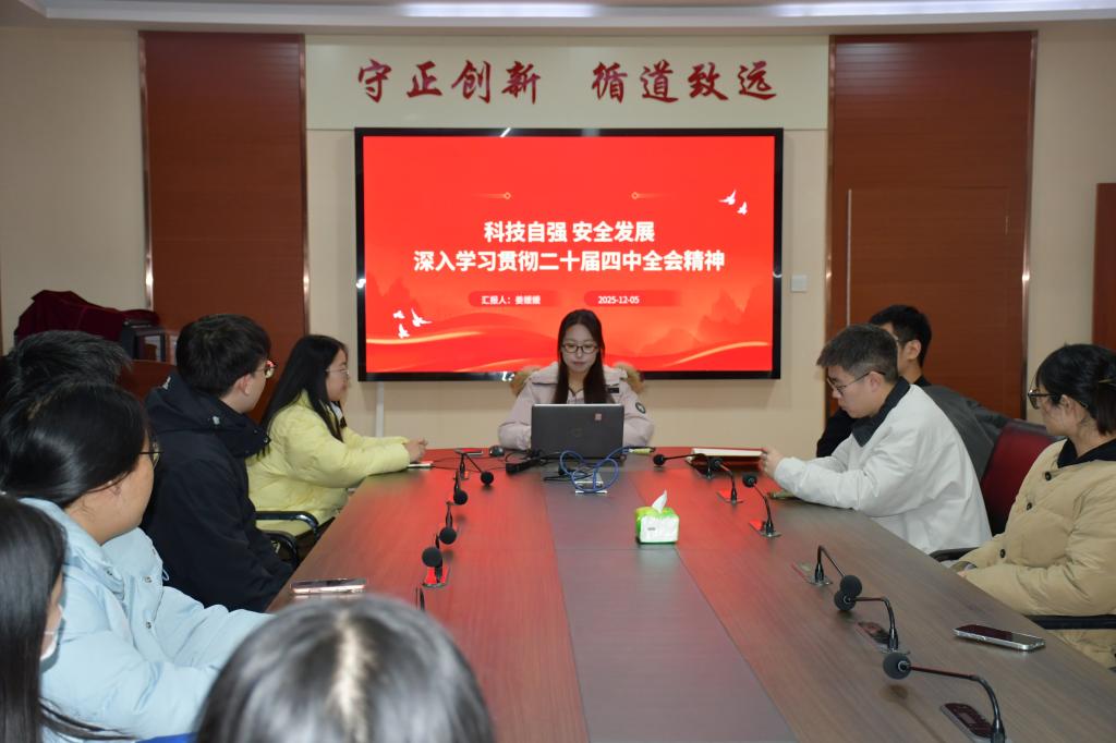为深入学习贯彻党的二十届四中全会精神,12月5日,学院研究生会在二办203举办了“四中全会定航向,改革宏图谱华章”学术沙龙系列活动第一期。本期活动主要聚焦科技自强、国家安全两个方面,由王一茗、姜媛媛、刘宗驰3名研究生同学担任主讲人,学院30余名研究生参加活动。