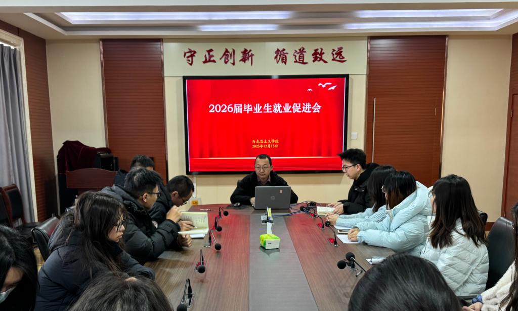 为扎实推进毕业生就业工作,引导学生树立正确择业观,提升就业竞争力,学院于12月15日召开了2026届毕业生就业工作推进会。学院党委副书记刘志峰主持会议,专职辅导员周献术、毕业班辅导员蒋志远及2026届毕业生参加会议。