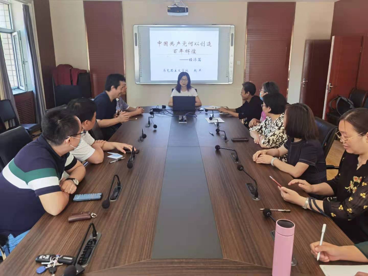 6月10日下午,原理教研室党支部赵燕博士以“中国共产党何以创造百年辉煌——经济篇”为主题作专题报告。赵燕以美国经济霸权衰退以及中国共产党领导下的社会主义经济建设伟大成就为主题,论述了我国建党100年是以中国为引领的社会主义阵营同以美国为主导的资本主义阵营经济力量产生强烈对比的100年;是中国特色社会主义经济建设取得辉煌成就,崛起成为第二大经济体以及以美国为首的发达资本主义国家陷入经济金融化,经济不断衰退和复苏无望、美国霸权由复苏走向衰退的100年。