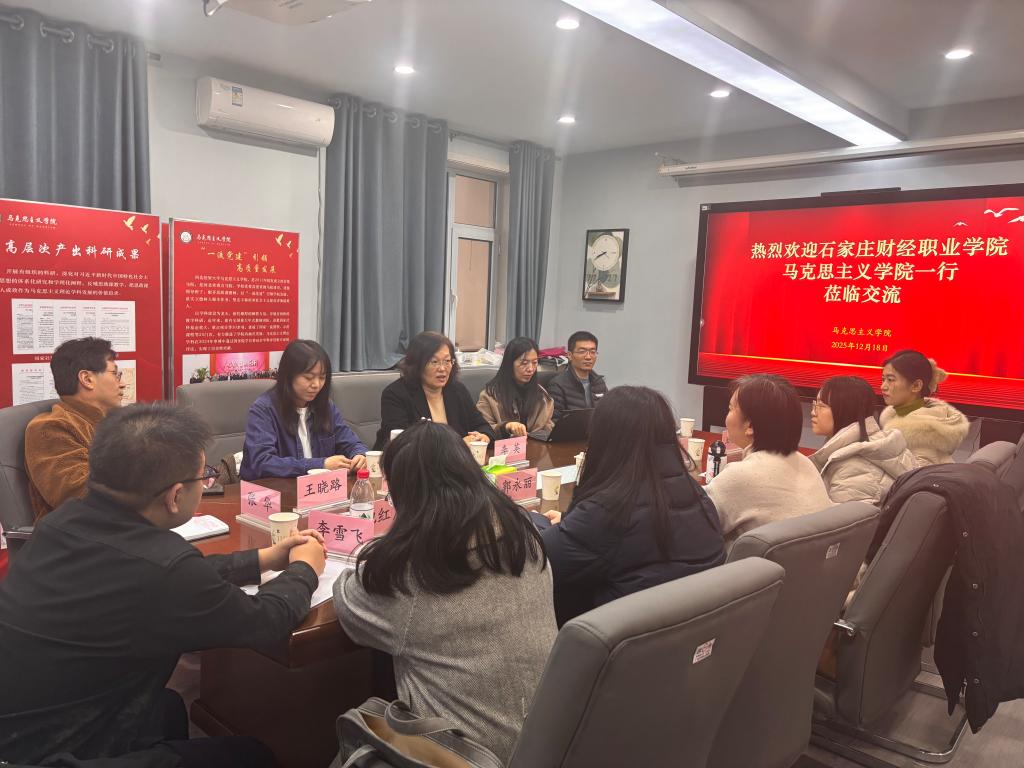 12月18日下午,石家庄财经职业学院马克思主义学院一行赴河北经贸大学马克思主义学院,与马克思主义基本原理教研室开展集体备课。河北经贸大学马院院长李英、马克思主义基本原理教研室副主任王晓路、青年教师出席备课会。备课会由王晓路主持。